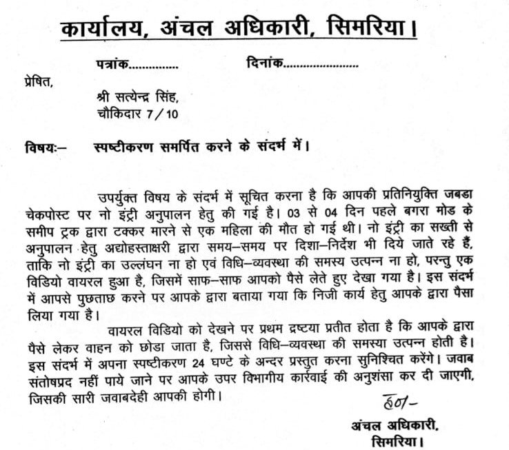 अवैध वसूली के वायरल वीडियो पर एक्शन, चौकीदार से 24 घंटे में मांगा जवाब
