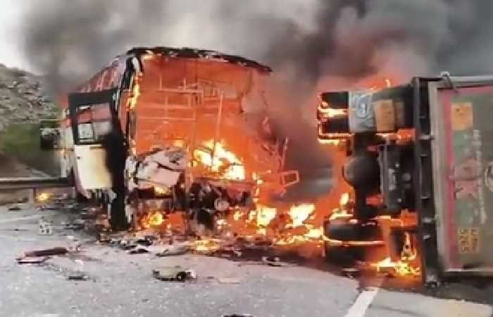बस-ट्रक टक्कर के बाद लगी आग, 13 लोगों की दर्दनाक मौत
