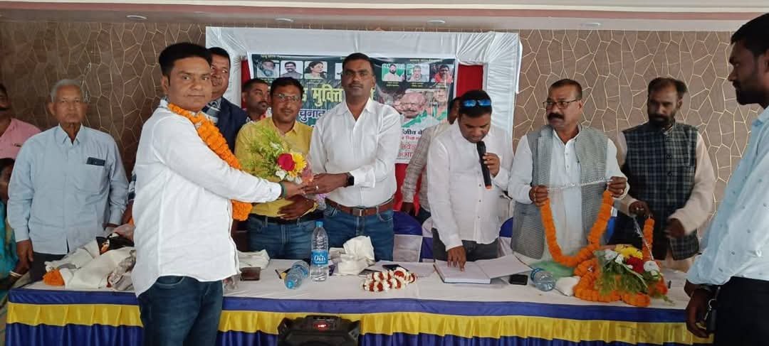 इटखोरी(चतरा)। जिले के इटखोरी प्रखंड मुख्यालय स्थित मां तारा होटल में झारखंड मुक्ति मोर्चा द्वारा सोमवार को प्रखंड स्तरीय सम्मेलन का आयोजन किया गया। जिसमें मुख्य रूप से पूर्व जिलाध्यक्ष पंकज प्रजापति, सिमरिया विधानसभा के पूर्व विधायक उमीदवार मनोज चंद्रा, पूर्व जिला सचिव अमरदीप साव, केंद्रीय समिति सदस्य सरोज देवी समेत अन्य उपस्थित थे। प्रखंड स्तरीय सम्मेलन में सर्व प्रथम संगठन के मजबुती पर चर्चा करते हुए प्रखंड कमेटी का पुर्णगठन कर विस्तार किया गया। जिसमें सर्वसम्मति से बबलू कुमार केसरी को प्रखंड अध्यक्ष, मकसूद आलम को सचिव, बंटी आलम को उपाध्यक्ष, मोहम्मद खलिद को कोषाध्यक्ष, राजदेव यादव को उपाध्यक्ष चुना गया है। इससे पूर्व सम्मेलन में पहुंचे वरिष्ठ नेता व कार्यकर्ताओं को पुष्प गुच्छ एवं अंग वस्त्र देकर स्वागत किया गया। वहीं नवनियुक्त प्रखंड अध्यक्ष ने कहा है कि झारखंड सरकार की हर योजना जनता के बीच पहुंचाना हम सभी का कर्तव्य है। वहीं श्रभ् चंद्रा ने सभी नव नियुक्त पदाधिकारियों को बधाई व शुभकामनाएं छी। मौके पर श्याम सिंह, इटखोरी मुखिया युगेश्वर दांगी, रामदेव यादव समेत अन्य उपस्थित थे।