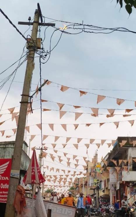 पत्थलगड़ा (चतरा)। पत्थलगड़ा प्रखंड मुख्यालय स्थित साप्ताहिक मंगलवार बाजार क्षेत्र में गांधी चौक के पास शाम में एक-एक शॉर्ट सर्किट से पोल पर लगे बिजली प्रवाहित कॉपर बिजली तार में अचानक आग लगी गई। आग लगते ही बिजली तार धू धू कर जलने लगगी जिससे साप्ताहिक मंगलवार बाजार करने पहुंचे राहगीरों व दुकानदार में भगदड़ मच गई। बिजली विभाग के कर्मी को सूचना मिलते हैं बिजली काट दी गई। जिससे गांधी चौक में बड़ा अनहोनी घटना होने से टला गई।