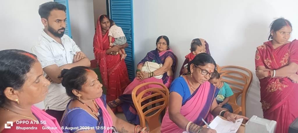 गिद्धौर(चतरा)। गिद्धौर प्रखंड मुख्यालय स्थित पंचायत भवन में बुधवार को गांव की महिलाओं का आधार कार्ड शुद्धिकरण एवं मोबाइल नंबर लिंक करवाने को लेकर कैंप का आयोजन किया गया। आंगनबाड़ी सेविकाओं द्वारा आयोजित इस कैंप में दर्जनों महिलाएं आधार कार्ड शुद्धिकरण करवाने पहुंची। सेविकाओं ने बताया की आंगनबाड़ी में मिलने वाले राशन अब बायोमेट्रिक से लाभुकों को देना है। जिसके लिए शुद्धिकरण करवाया जा रहा है। मौके पर आंगनबाड़ी सेविका उषा देवी, कांति देवी, मीना कुमारी, रीता देवी, कांति सिन्हा, सुनैना कुमारी व आदि उपस्थित थी।