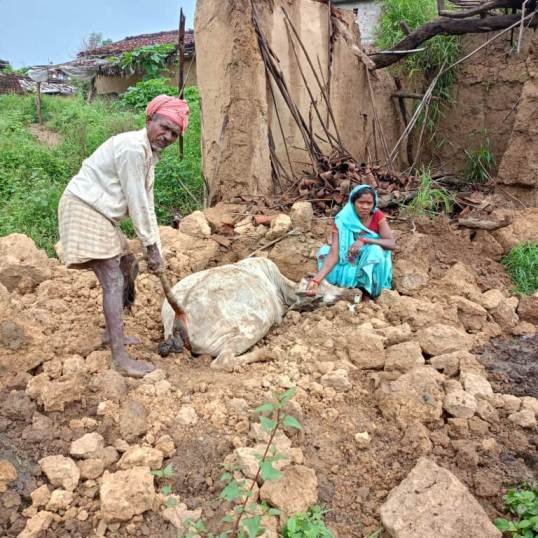 गरीब का आशियाना ढहा, गर्भवती गाय की दबकर मौत, गरिबों का सपना कीचड़ और मिट्टी के नीचे दबकर टूट रहा है