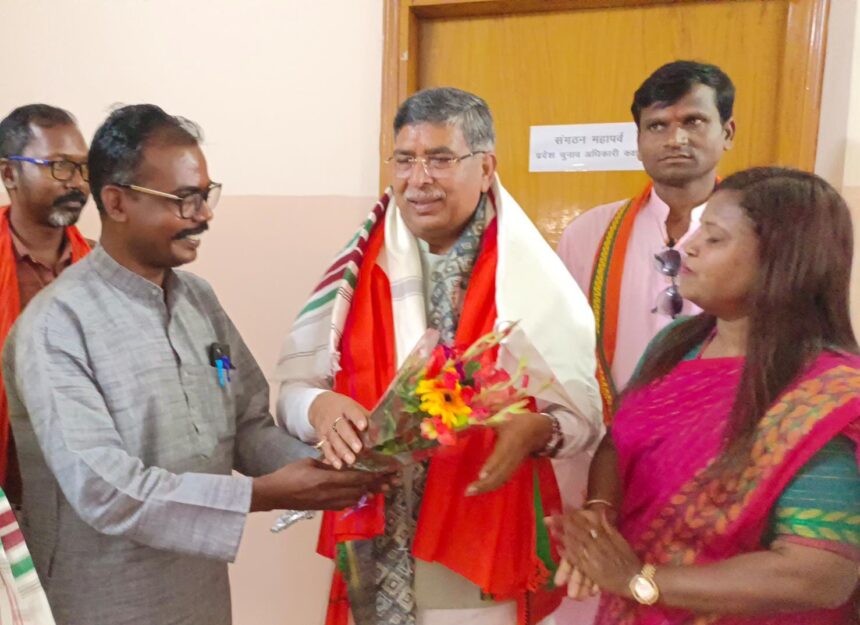 गुमला: राज्य सभा सांसद प्रो. आदित्य प्रसाद साहु को झारखंड प्रदेश भारतीय जनता पार्टी का कार्यकारी अध्यक्ष बनाए जाने पर भाजपा किसान मोर्चा के प्रमंडलीय प्रभारी मंगल सिंह भोगता ने अपने समर्थकों के साथ रांची स्थित पार्टी कार्यालय में उन्हें अंग वस्त्र और पुष्प गुच्छ देकर बधाई दी मंगल सिंह भोगता ने कहा कि आदित्य प्रसाद साहु के नेतृत्व में संगठन को एक नई दिशा मिलेगी . नए कार्यकारी अध्यक्ष की नियुक्ति से राज्य भर के भाजपा कार्यकर्ताओं में नया जोश व उत्साह का संचार हुआ है . मंगल सिंह भोगता के साथ भाजपा किसान मोर्चा प्रदेश कार्यालय के मंत्री सहित अन्य कार्यकर्ता शामिल थे.