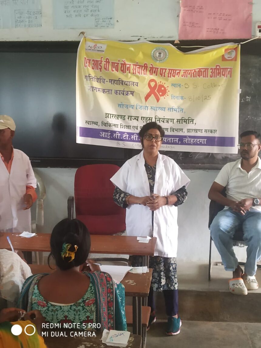 लोहरदगा।-बीएस कॉलेज परिसर में बुधवार को झारखंड राज्य एड्स नियंत्रण समिति के तत्वावधान में एचआईवी एवं यौन संचारी रोगों (एसटीडी/एसटीआई) के प्रति जागरूकता अभियान चलाया गया। कार्यक्रम का नेतृत्व आईसीटीसी काउंसलर डॉ. अर्चना प्रसाद और एसटीआई काउंसलर बिंदेश्वर भगत ने किया।
