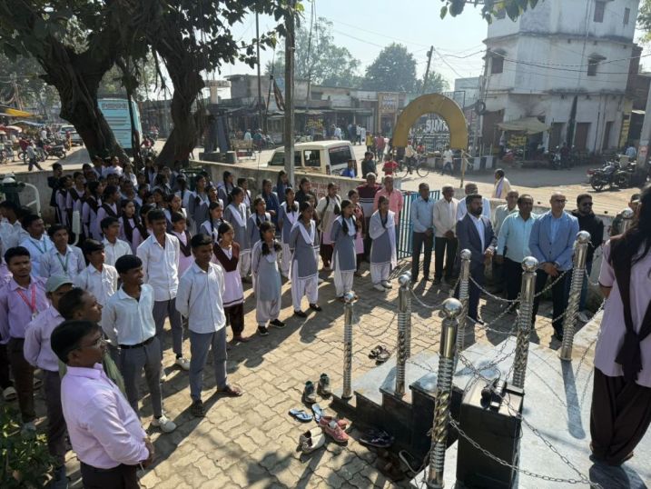 सिमरिया (चतरा)। राष्ट्रभक्ति के जोश और गौरव से ओत-प्रोत माहौल में शुक्रवार को सिमरिया स्थित सुभाष पार्क में राष्ट्रगीत वंदे मातरम की रचना के 150 वर्ष पूर्ण होने पर एक भव्य समारोह का आयोजन किया गया। कार्यक्रम का संचालन प्रखंड प्रशासन द्वारा किया गया, जिसमें बड़ी संख्या में विद्यार्थी, शिक्षक, समाजसेवी और स्थानीय नागरिक शामिल हुए। समारोह की शुरुआत स्वतंत्रता सेनानी नेताजी सुभाष चंद्र बोस की प्रतिमा पर माल्यार्पण और महर्षि बंकिमचंद्र चट्टोपाध्याय के चित्र पर पुष्पांजलि अर्पित कर की गई। इसके बाद अतिथियों ने वंदे मातरम के ऐतिहासिक महत्व और राष्ट्रभक्ति को प्रोत्साहित करने में इसकी भूमिका पर प्रकाश डाला। कार्यक्रम में स्कूली बच्चों द्वारा राष्ट्रगीत वंदे मातरम का सामूहिक गायन किया गया, जिससे पूरा परिसर देशभक्ति की भावना से गूंज उठा। मुख्य अतिथि बीडीओ चंद्र देव प्रसाद ने अपने संबोधन में कहा कि “वंदे मातरम केवल गीत नहीं, बल्कि राष्ट्रभावना का प्रतीक है, जिसने स्वतंत्रता आंदोलन को नई दिशा दी। वहीं सिमरिया प्रेस क्लब अध्यक्ष एवं वरिष्ठ पत्रकार शिवकुमार सिंह ने युवाओं से देशहित में योगदान देने और राष्ट्रगीत से प्रेरणा लेने का आह्वान किया। सीओ गौरव कुमार राय ने कहा कि “इस गीत से सुप्त भारतवर्ष जाग उठा था। थाना प्रभारी सूर्य प्रताप सिंह ने जानकारी दी कि वंदे मातरम की रचना वर्ष 1875 में हुई थी, जिसने स्वतंत्रता संग्राम के दौरान जन-जन में देशप्रेम की लौ प्रज्वलित रखी। मौके पर बुनियादी विद्यालय के प्रधानाचार्य सिद्धेश्वर सिंह, प्लस टू उच्च विद्यालय के प्रधानाचार्य मनोज रजक तथा शिक्षक डॉ. नितेश कुमार सहित अन्य गणमान्य उपस्थित रहे।