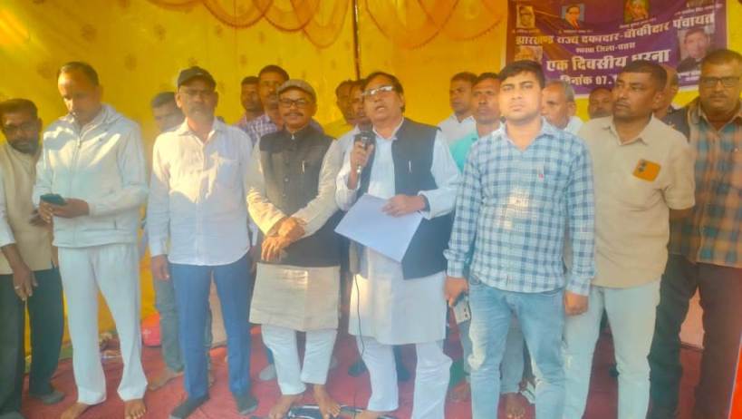 चतरा। पूर्व निर्धारित कार्यक्रम के तहत झारखण्ड राज्य दफादार चौकीदार पंचायत शाखा, चतरा जिला समिति द्वारा शुक्रवार को अपनी 13 सूत्री मांगों को लेकर चतरा समाहरणालय के समक्ष एक दिवसीय धरना प्रदर्शन किया गया। कार्यक्रम की अध्यक्षता जिला अध्यक्ष उमेश पासवान ने की, जबकि संचालन कामदेव पासवान ने किया। धरना में बतौर मुख्य अतिथि प्रदेश अध्यक्ष कृष्ण दयाल सिंह, विशिष्ट अतिथि प्रदेश संयुक्त सचिव तेजावत अंसारी और लोहरदगा जिलाध्यक्ष शमशुल अंसारी उपस्थित रहे। कार्यक्रम में जिले के विभिन्न प्रखंडों से बड़ी संख्या में दफादार और चौकीदार शामिल हुए। धरना में रखी गई प्रमुख मांगों में जिला चयन समिति में प्रदेश अध्यक्ष द्वारा मनोनीत प्रतिनिधि को शामिल करने, वर्ष 2000 से बकाया एरियर का भुगतान, एसीपी/एमएसीपी का लाभ देने, बीट क्षेत्र में ही ड्यूटी कराने, यात्रा भत्ता एवं 13 माह का वेतन देने, योग्यता के आधार पर पदोन्नति देने, सेवा से विमुक्त चौकीदारों की पुनर्नियुक्ति, वर्दी भत्ता भुगतान तथा बैंक ड्यूटी, कैदी स्कॉर्ट, रोड गश्त और डाक ड्यूटी पर रोक लगाने जैसी मांगें प्रमुख रहीं। साथ ही, झारखण्ड उच्च न्यायालय द्वारा पारित आदेशों के आलोक में झारखंड चौकीदार संवर्ग नियमावली 2015 के प्रावधानों में आवश्यक संशोधन करने और झारखंड ग्राम चौकीदार (संशोधन) विधेयक 2025 पारित करने की मांग भी की गई। कार्यक्रम में मुख्य अतिथि प्रदेश अध्यक्ष कृष्ण दयाल सिंह ने कहा कि भारत की सबसे पुरानी प्रशासनिक व्यवस्था चौकीदारी व्यवस्था को बचाने के लिए सरकार को तत्काल अध्यादेश जारी करना चाहिए। उन्होंने मुख्यमंत्री हेमंत सोरेन से आग्रह किया कि दिवंगत एवं सेवा निवृत्त चौकीदारों और दफादारों के आश्रितों को पूर्व नियुक्ति प्रक्रिया के अनुसार नियुक्त किया जाए। जिला अध्यक्ष उमेश पासवान ने कहा कि झारखंड सरकार के गृह, कारा एवं आपदा प्रबंधन विभाग के पत्रांक 5020 दिनांक 11 सितंबर 2017 के अनुसार चौकीदारों से केवल चौकीदारी मैनुअल में निर्धारित कार्य ही कराए जाने का आदेश दिया गया था, परंतु चतरा जिले में इसका अनुपालन नहीं हो रहा है। उन्होंने आरोप लगाया कि कई थाना प्रभारी सरकारी आदेशों की अनदेखी कर अतिरिक्त ड्यूटी कराते हैं। धरना में सर्वसम्मति से निर्णय लिया गया कि 6 दिसंबर 2025 को रांची में आयोजित होने वाले राज्यस्तरीय रैली और करो या मरो आंदोलन में चतरा जिला के सभी चौकीदार-दफादार अपने परिवार सहित भाग लेंगे। कार्यक्रम में राजू पासवान, अशोक भगत, श्यामदेव पासवान, सरेंद्र दांगी, मुमताज अंसारी, शिव कुमार पासवान, परमेश्वर पासवान, शमीम अंसारी, सत्येंद्र तुरी, मजीद मियां, उमेश गोप, रामदेव पासवान, सतार मियां, रंचन देवी, मुनि देवी, जहीन देवी, अशोक पा