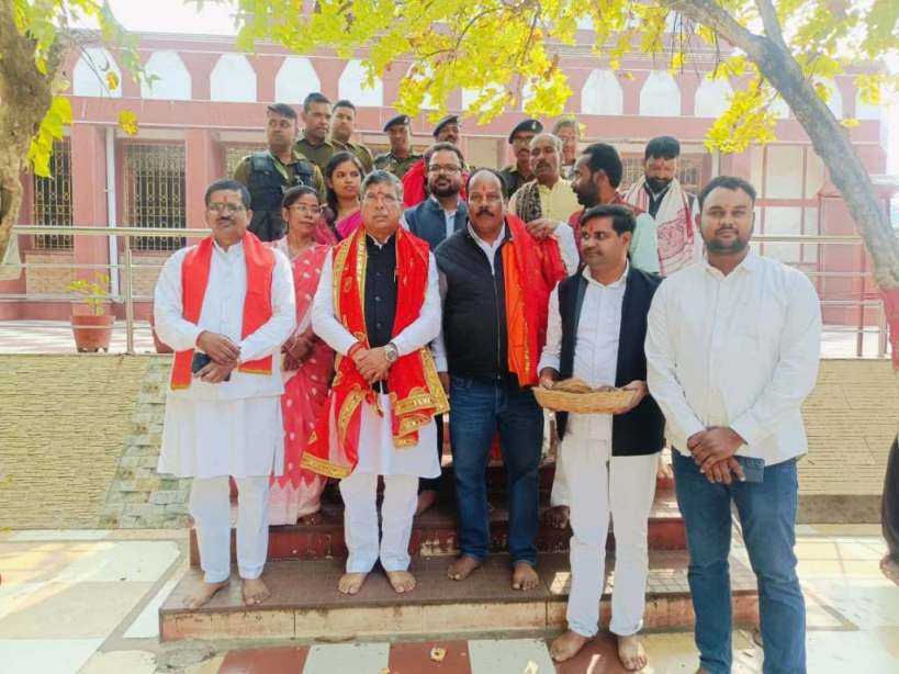 इटखोरी (चतरा)। जिले की प्रसिद्ध धार्मिक तीर्थस्थली माता भद्रकाली मंदिर, इटखोरी में मंगलवार को भाजपा के कार्यकारी प्रदेश अध्यक्ष आदित्य साहू एवं हजारीबाग विधायक प्रदीप प्रसाद ने पहुंचकर विधिवत पूजा-अर्चना की। दोनों नेताओं ने मुख्य मंदिर सहित परिसर के अन्य देवालयों में भी माथा टेका और राज्य की सुख-समृद्धि एवं शांति का आशीर्वाद प्राप्त किया। मंदिर प्रबंधन समिति की ओर से आए अतिथियों को माता भद्रकाली का चित्र भेंट कर सम्मानित किया गया। इस अवसर पर जिला महामंत्री डॉ. मृत्युंजय सिंह, सुजीत भारती, डोमन राणा, सीताराम दांगी, रतन शर्मा, रणधीर सिंह, कमलेश सिंह, शक्ति सिंह सहित बड़ी संख्या में कार्यकर्ता उपस्थित थे।