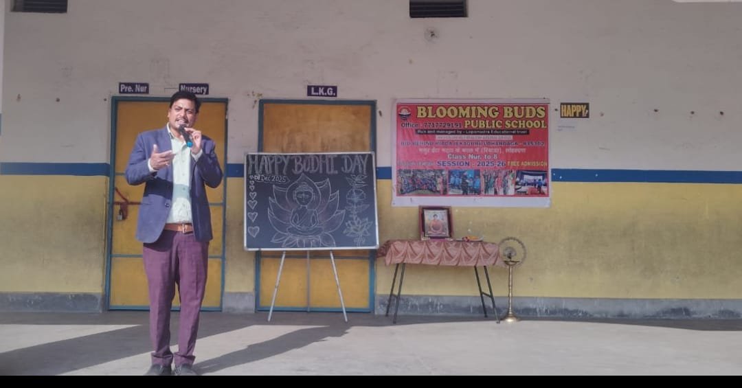 8 दिसंबर 2025, लोहरदगा — ब्लूमिंग बड्स पब्लिक स्कूल, एकागुड़ी (रियाडा के पीछे) में आज बोधि दिवस बड़ी श्रद्धा, शांति और ज्ञान के साथ मनाया गया। इस अवसर पर स्कूल के चेयरमैन श्री मुकेश कुमार ने विद्यार्थियों को संबोधित करते हुए अत्यंत प्रेरणादायी भाषण दिया।