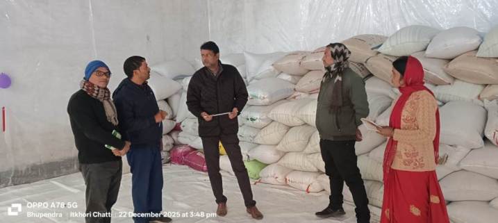गिद्धौर (चतरा)। गिद्धौर प्रखंड परिसर स्थित जेएसएलपीएस के धान अधिप्राप्ति केंद्र और गोदाम का सोमवार को जेएसएलपीएस के जिला कार्यक्रम प्रबंधक गौरव जायसवाल ने निरीक्षण किया। शाम करीब 4 बजे पहुंचे डीपीएम ने गोदाम में धान के रखरखाव और खरीद प्रक्रिया का बारीकी से जायजा लिया। निरीक्षण के दौरान डीपीएम गौरव जायसवाल ने उपस्थित अधिकारियों और एफपीओ सदस्यों को स्पष्ट निर्देश दिया कि क्षेत्र के अधिक से अधिक किसानों से धान की खरीद सुनिश्चित की जाए। उन्होंने कहा कि किसानों तक जल्द से जल्द संदेश और सूचना पहुंचाई जाए, ताकि वे इधर-उधर भटकने के बजाय अपना धान जेएसएलपीएस के एफपीओ गोदाम में ही बिक्री करें और सरकार द्वारा निर्धारित मूल्य का लाभ उठा सकें। निरीक्षण कार्यक्रम के दौरान अंचलाधिकारी अनंत सयनम विश्वकर्मा, जेएसएलपीएस अधिकारी अनिल प्रजापति, जनसेवक उज्जवल कुमार सिंह और एफपीओ डायरेक्टर प्रतिमा देवी सहित कई अन्य मौजूद थे।
