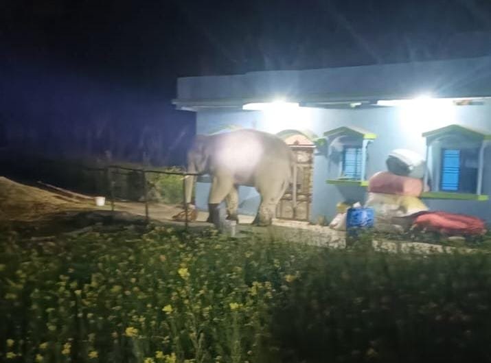 सिमरिया (चतरा)। सिमरिया प्रखंड क्षेत्र में इन दिनों जंगली हाथियों का आतंक जारी है। झुंड से भटका एक हाथी गांवों में घुसकर घरों में तोड़-फोड़ कर रहा है और खड़ी फसलों को नुकसान पहुंचा रहा है। गुरुवार रात टूटीलावा पंचायत के राम नगर में इस भटके हाथी ने जमकर उत्पात मचाया। हाथी ने मनोज राम, अरुण राम एवं कैलाश राम के खेतों में लगी आलू की फसल को पूरी तरह नष्ट कर दिया। बताया गया कि हाथी ने खेतों में लगी आलू की फसल चट कर ली और आसपास की अन्य फसलों को भी भारी नुकसान पहुंचाया। इससे पीड़ित किसानों के सामने आजीविका का संकट खड़ा हो गया है। पीड़ितों ने प्रशासन से मुआवजे की मांग की है। ग्रामीणों ने हाथी को भगाने के लिए रात भर मशालें जलाकर, ढोल बजाकर और पटाखे फोड़कर प्रयास किए, लेकिन हाथी काफी देर तक मौके पर डटा रहा। इस घटना के बाद पूरे इलाके में दहशत का माहौल बना हुआ है। ग्रामीणों ने वन विभाग से मांग की है कि भटके हाथी को जल्द काबू में कर सुरक्षित रूप से जंगल क्षेत्र में छोड़ा जाए, ताकि ग्रामीणों की जान-माल और फसलों की सुरक्षा सुनिश्चित हो सके।