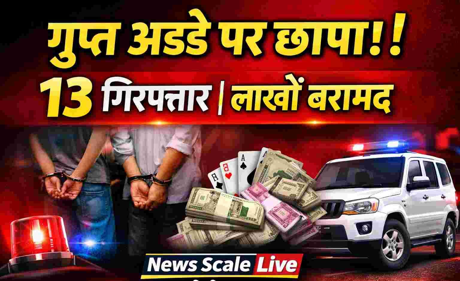 जुए के अड्डे पर बड़ी कार्रवाई, 13 जुआरी गिरफ्तार — ₹2.10 लाख नकद व बोलेरो जब्त