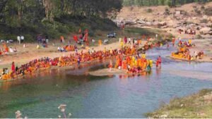 मयूरहंड (चतरा)। मयूरहंड प्रखंड अंतर्गत करमा गांव में बुधवार को शिव परिवार प्राण प्रतिष्ठा सह महायज्ञ को लेकर भव्य कलश यात्रा निकाली गई। धार्मिक उत्साह और आस्था के माहौल में निकली इस कलश यात्रा में बड़ी संख्या में महिला पुरुष श्रद्धालुओं ने भाग लिया। कलश यात्रा का शुभारंभ जिला परिषद उपाध्यक्ष ब्रजकिशोर तिवारी, जिला परिषद सदस्य देवेंद्र चंद्रवंशी, मुखिया रामनाथ यादव एवं सांसद प्रतिनिधि सुधीर यादव ने संयुक्त रूप से किया। अतिथियों ने कलश यात्रियों को मिट्टी के कलश, नारियल व चुनरी भेंट कर यात्रा को रवाना किया। कलश यात्रा यज्ञ मंडप से प्रारंभ होकर नगर भ्रमण करते हुए बड़ाकर नदी के उत्तरवाहिनी घाट गारुकुरहा पहुंची, जहां यज्ञाचार्य गोपाल आचार्य द्वारा वैदिक मंत्रोच्चार के बीच कलश में पवित्र जल भरवाया गया।