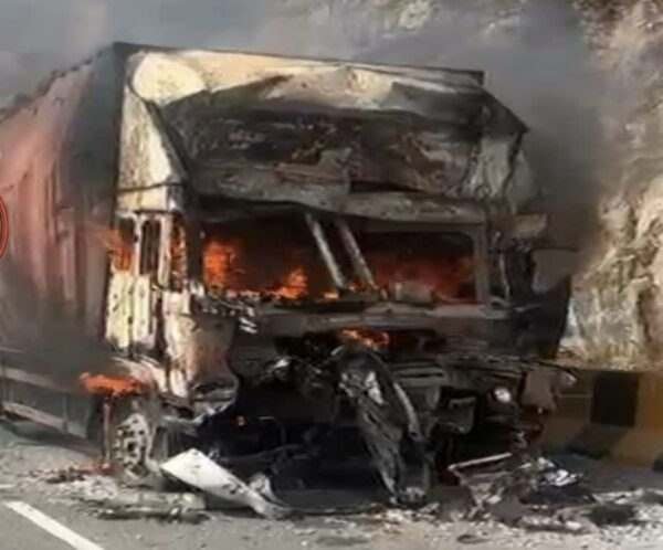 जानकारी के अनुसार, रांची की ओर से तेज गति से आ रहा मशीनरी लदा कंटेनर वाहन (टीएस07यूई–8693) घाटी में अचानक ब्रेकफेल हो गया। अनियंत्रित कंटेनर ने आगे चल रहे स्टोन चिप्स लदे हाईवा (बीआर10–04345) को पीछे से जोरदार टक्कर मार दी। टक्कर इतनी भीषण थी कि कंटेनर के अगले हिस्से में आग लग गई और देखते ही देखते वाहन धू-धू कर जलने लगा।